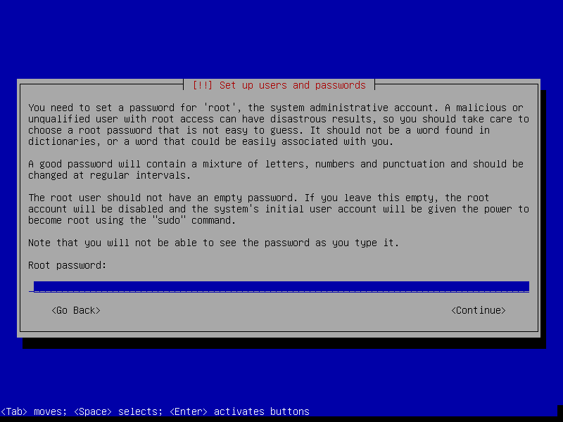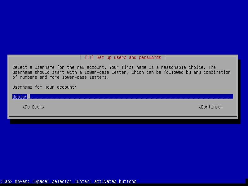 debian(the full name doesn't matter, you can leave it empty) - Set the account username as